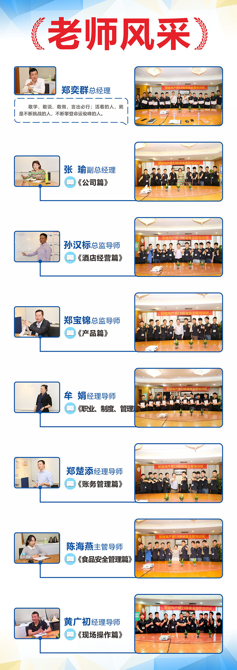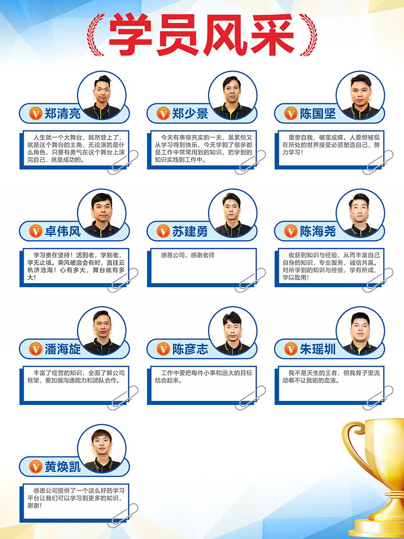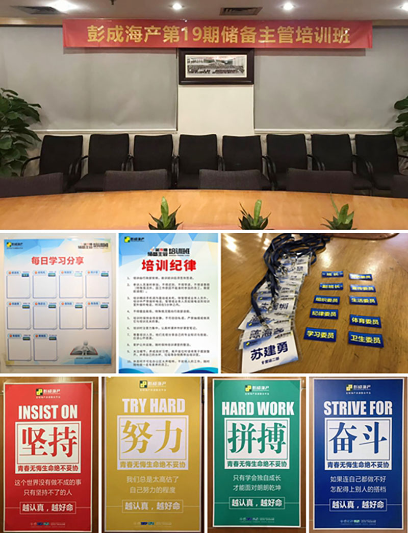 彭成海产自开设公司《储备主管培训班》以来,10年多时间培育近200名优秀管理干部输送公司甚至行业。本着施才聚才、养才造才的理念,结合行业性质及客户所需不断探索、开发、设置教学课程,拥有内部培训导师,期期无私奉献,倾心传授,教会为人处事,教会本领技能,助有梦者追梦远航!感恩无私育人的彭成导师们!