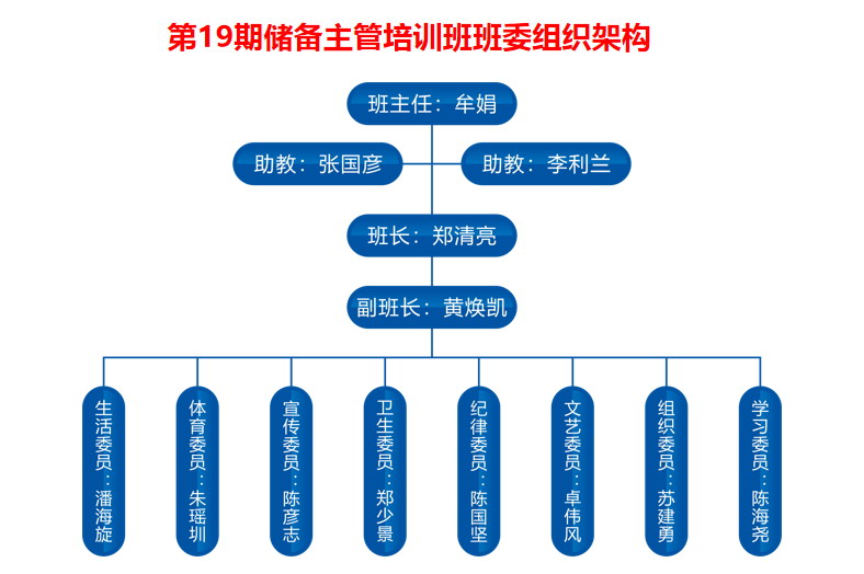 升级版的第19期培训班采取众人参与,由学员自定班名、班级口号、班歌、班舞,竞选班委,发挥所长,职能明确,构成本期班委组织架构。最终以《启航班》命名,树立“扬青春之帆,为梦想启航”的学习目标,结合课堂理论、案例教学、情景演练、士气展示与舞蹈表演,通过培训提升能力、增强自信、挑战困难、蜕变成蝶。祝福又一批学员们!